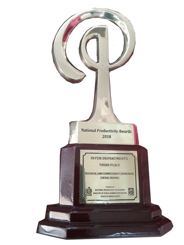 මධ්යම පළාත් ඉඩම් කොමසාරිස් දෙපාර්තම්න්තුව 2018 වර්ෂයේ පවත්වන ලද ජාතික ඵලදායිතා තරඟයේ "අන්තර් දෙපාර්තමේන්තු කාණ්ඩයේ " තෙවන ස්ථානය ජයග්රහණය කරන ලදි. සම්මාන හා සහතික ප්රදානය බණ්ඩාරනායක සම්මන්ත්රණ ශාලාවේ දී 2019.03.26 දින සිදු කරන ලදි.